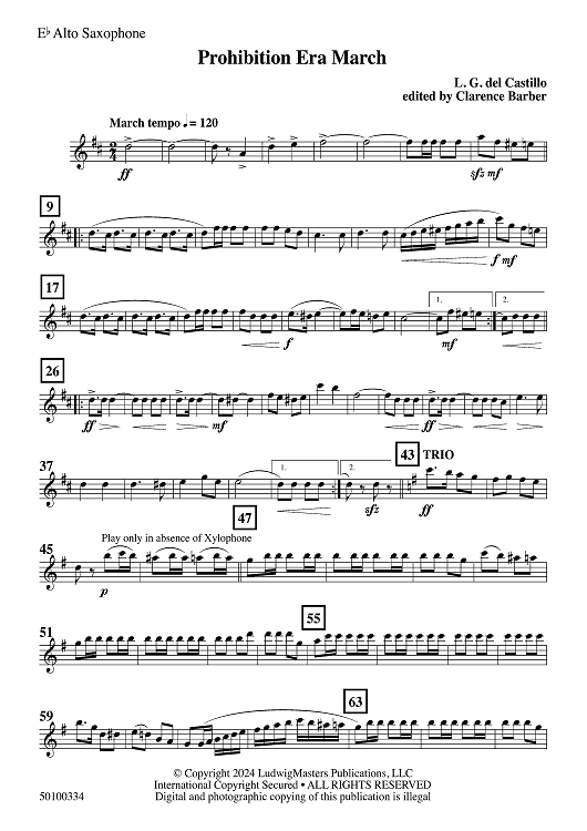 Digital Sheet Music for Prohibition Era March - Eb Alto Sax by Clarence Barber, Lloyd Gould del Castillo scored for Concert Band; id:503848