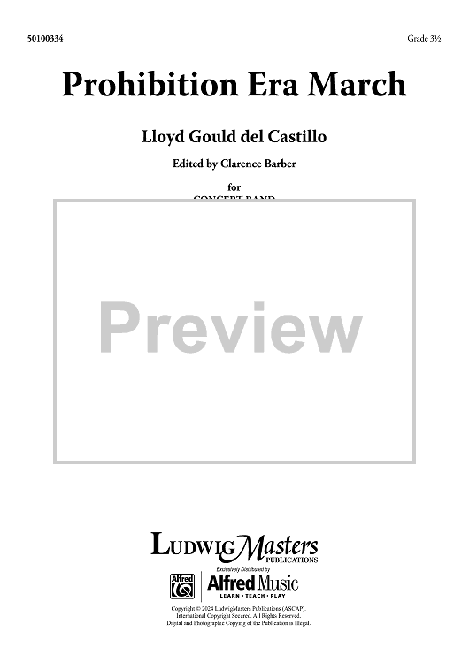Digital Sheet Music for Prohibition Era March - Full Score by Clarence Barber, Lloyd Gould del Castillo scored for Concert Band; id:503838