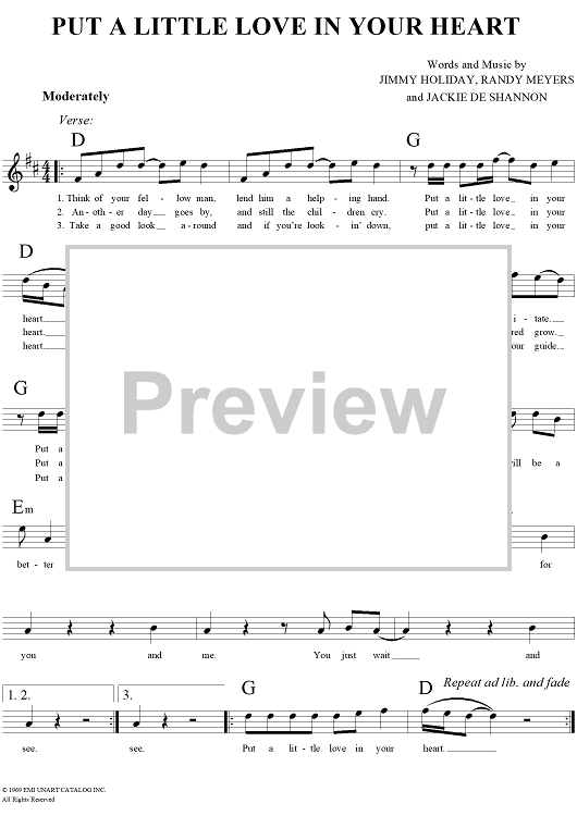 Digital Sheet Music for Put A Little Love In Your Heart by Jimmy Holiday, Jackie DeShannon, Randy Meyers scored for Lead Sheet; id:266440
