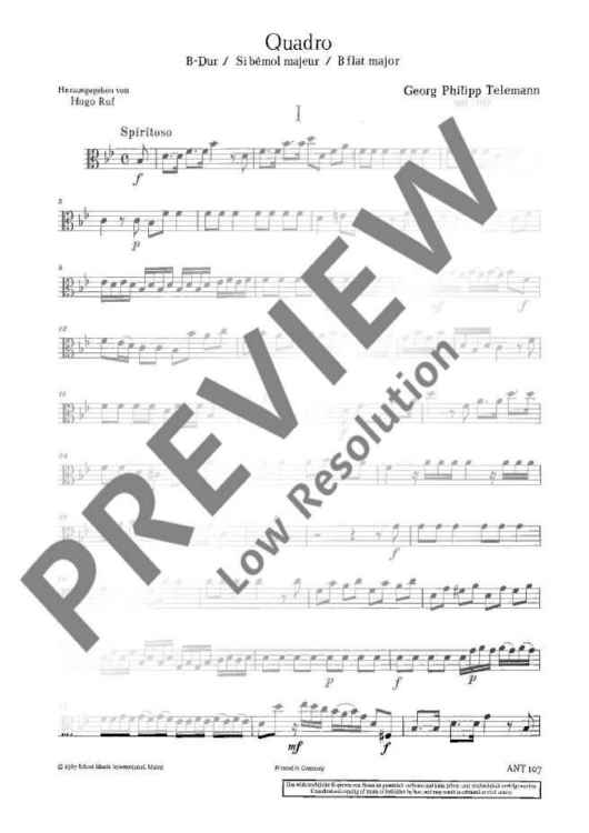 "Quadro B flat major - Score and Parts" Sheet Music by Georg Philipp Telemann