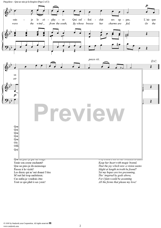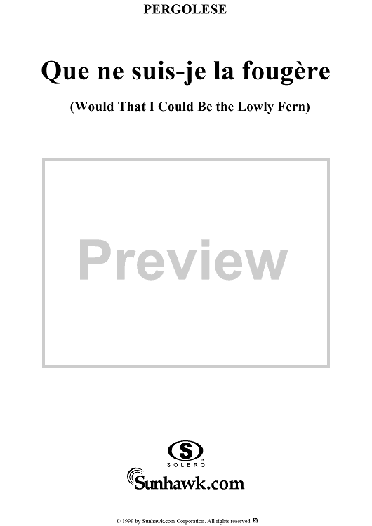"Que ne suis-je la fougère" Sheet Music by Giovanni Battista Pergolesi