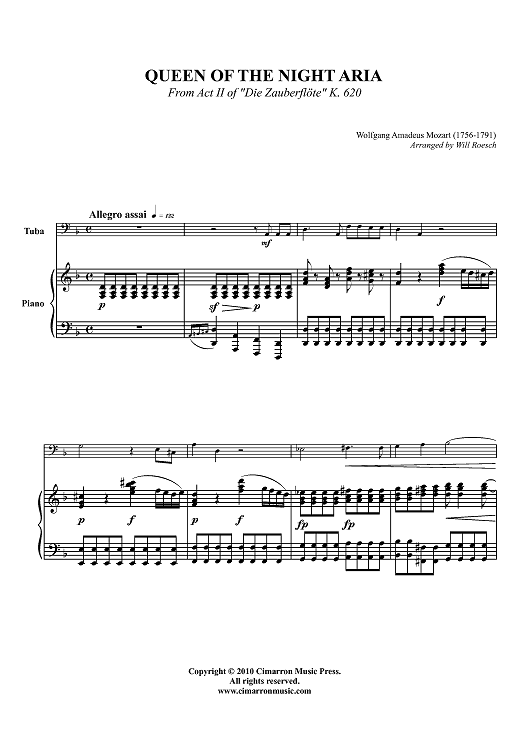 Digital Sheet Music for Queen of the Night Aria - Piano Score by Wolfgang Amadeus Mozart, Will Roesch scored for Tuba/Piano; id:426981