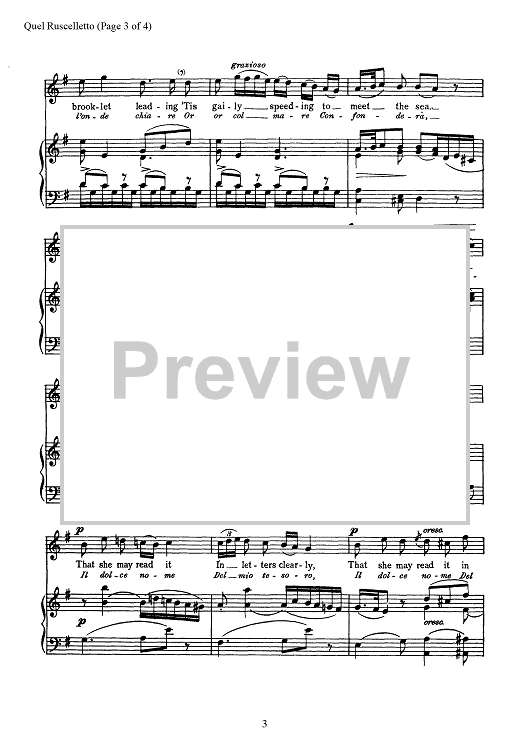"Quel Ruscelletto (The Brooklet)" Sheet Music by Pietro Domenico Paradies