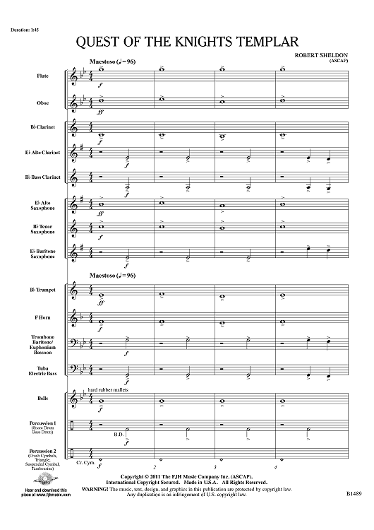 Digital Sheet Music for Quest of the Knights Templar - Score by Robert Sheldon scored for Concert Band; id:426172