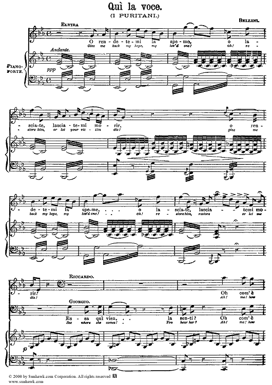"Qui la voce" Sheet Music by Vincenzo Bellini