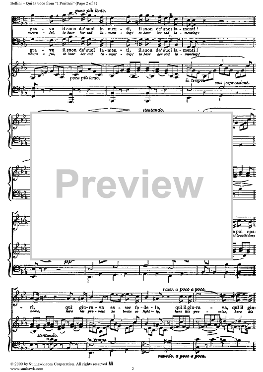Digital Sheet Music for Qui la voce by Vincenzo Bellini scored for Voice/Piano; id:254459