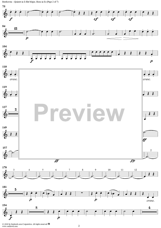"Quintet in E-flat Major, Op. 16 - Horn" Sheet Music by Ludwig van Beethoven