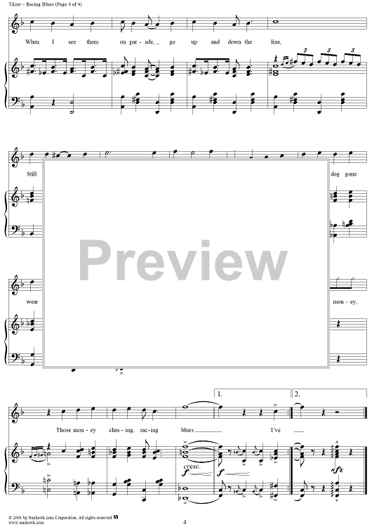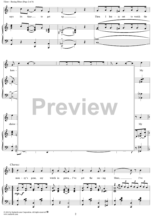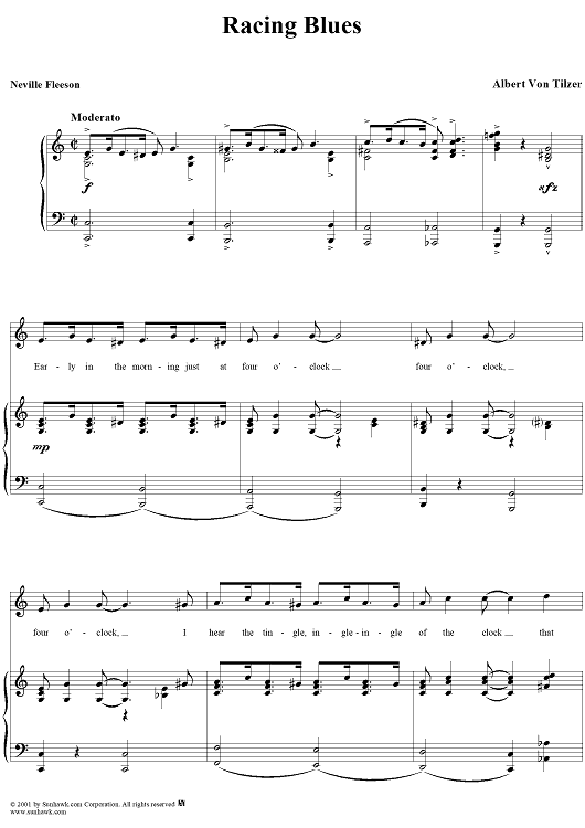 Digital Sheet Music for Racing Blues by Albert von Tilzer, Neville Fleeson scored for Piano/Vocal; id:264680