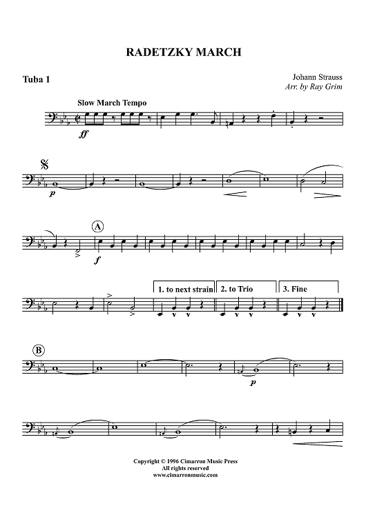 Digital Sheet Music for Radetzky March - Tuba 1 by Johann Strauss I, Ray Grim scored for Tuba Quartet; id:317431