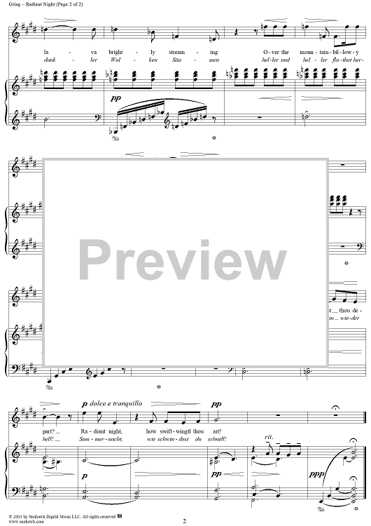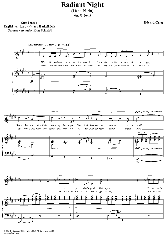 Digital Sheet Music for Radiant Night (Lichte Nacht) by Edvard Grieg scored for Voice/Piano; id:267592