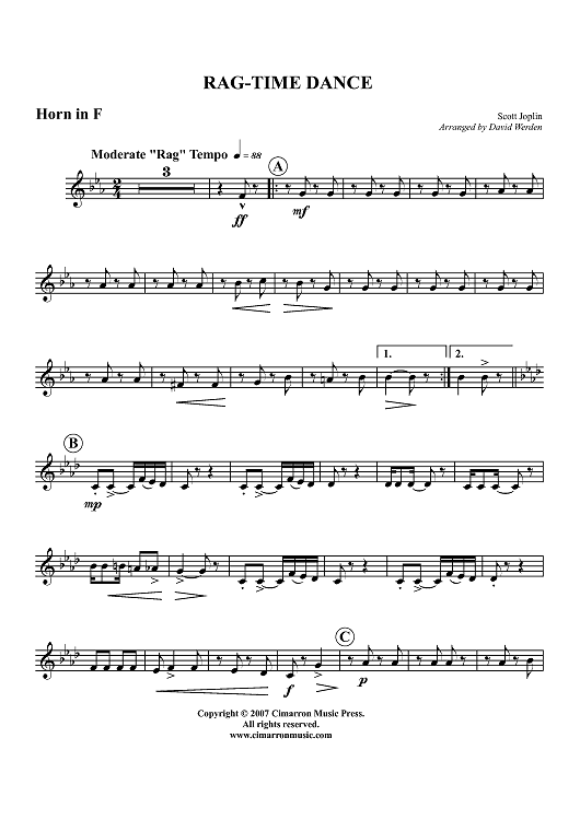 "Rag-Time Dance - Horn in F" Sheet Music by Scott Joplin