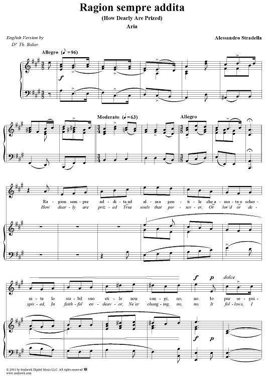Digital Sheet Music for Ragion sempre addita (How Dearly Are Prized) by Alessandro Stradella scored for Voice/Piano; id:257657