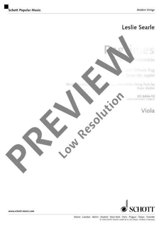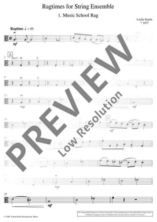 "Ragtimes for String Ensemble - Viola" Sheet Music by Leslie Searle