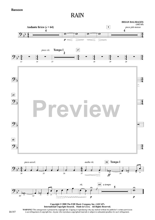 "Rain - Bassoon" Sheet Music by Brian Balmages