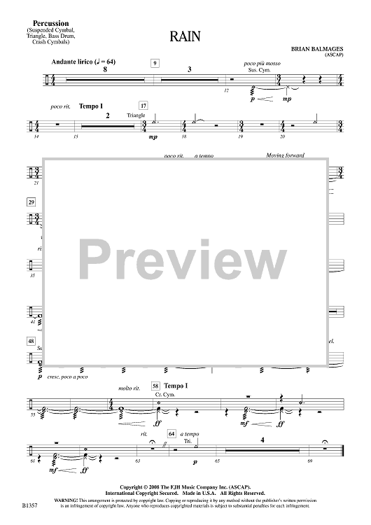 Digital Sheet Music for Rain - Percussion by Brian Balmages scored for Concert Band; id:501828