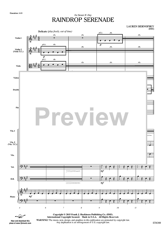 Digital Sheet Music for Raindrop Serenade - Score by Lauren Bernofsky scored for Orchestra; id:456186
