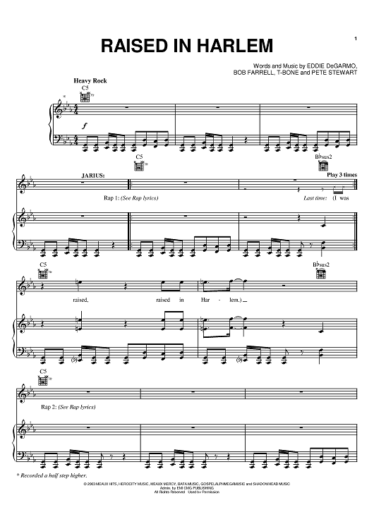Digital Sheet Music for Raised In Harlem by T-Bone Walker, Bob Farrell, Eddie DeGarmo, Pete Stewart, Michael Tait scored for Piano/Vocal/Chords; id:375199
