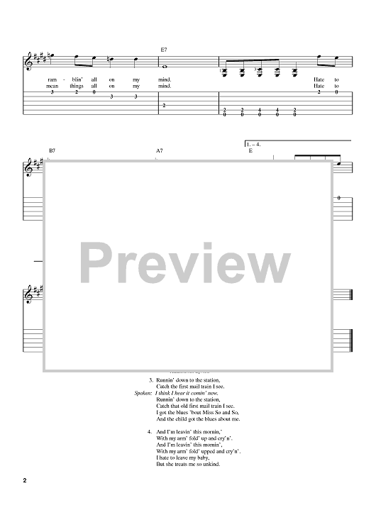 "Ramblin' On My Mind" Sheet Music by Eric Clapton