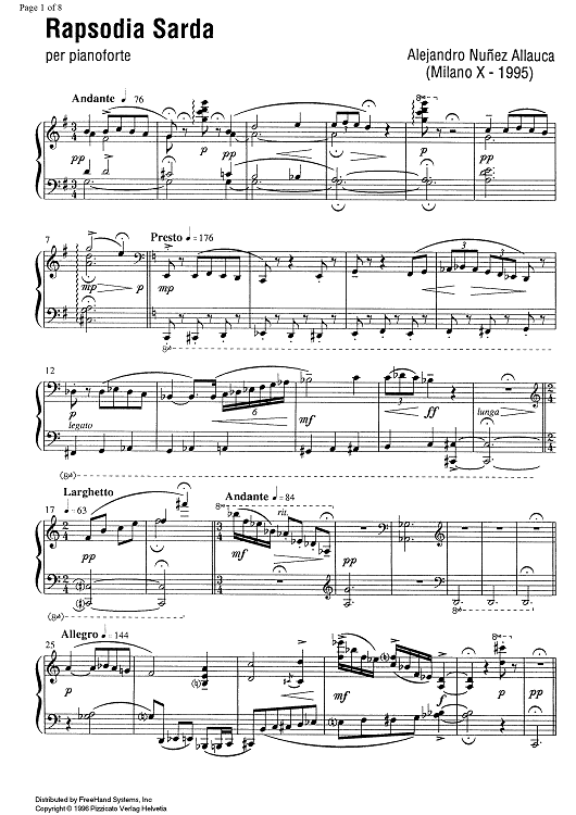 Digital Sheet Music for Rapsodia Sarda by , Alejandro Núñez Allauca scored for Piano Solo; id:330423