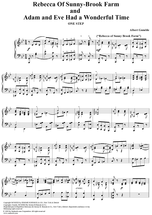 Digital Sheet Music for Rebecca Of Sunny-Brook Farm / Adam And Eve Had A Wonderful Time medley (One Step) by Albert Gumble scored for Piano/Vocal; id:267422