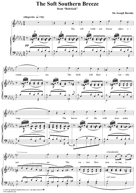 Digital Sheet Music for Rebekah, "The soft southern breeze" by Joseph Barnby scored for Voice/Piano; id:260485
