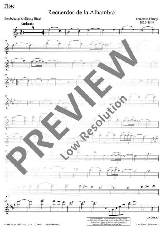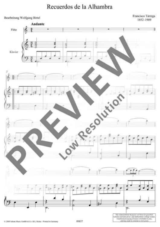 Composed in 1886, the tremolo study 'Recuerdos de la Alhambra' is without doubt Tarrega's best-known piece. It evokes memories of the Moorish citadel located on a hill in the Spanish Granada. Thanks to the present arrangement, the enchanting gem with its slightly melancholy tinge - perhaps inspired by Georges Bizet's 'Je crois entendre encore' from The Pearl Fishers - is now also available for instruments other than the guitar.