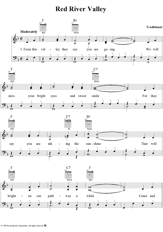Digital Sheet Music for Red River Valley by Traditional scored for Piano/Vocal; id:261753