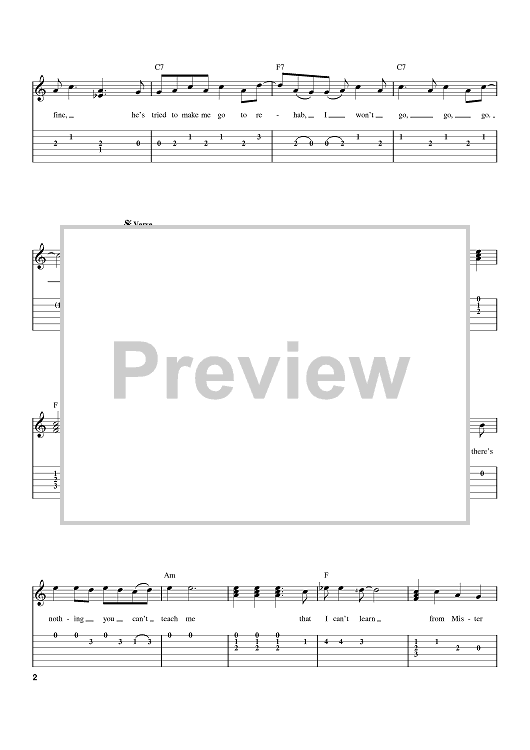 Digital Sheet Music for Rehab by Amy Winehouse scored for Easy Guitar Tab; id:401519