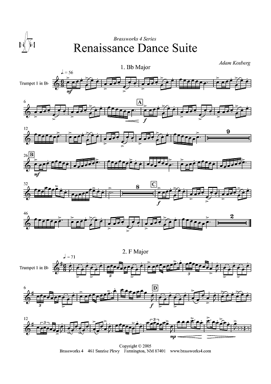 "Renaissance Dance Suite - Trumpet 1 in B-flat" Sheet Music by Adam Kosberg