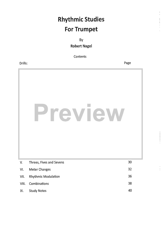 "Rhythmic Studies for Trumpet" Sheet Music by Robert Nagel