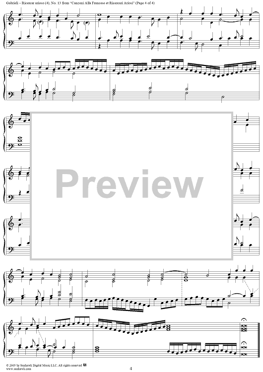 Digital Sheet Music for Ricercar arioso (IV), No. 13 from "Canzoni Alla Francese et Ricercari Ariosi" by Andrea Gabrieli scored for Organ Solo; id:306587