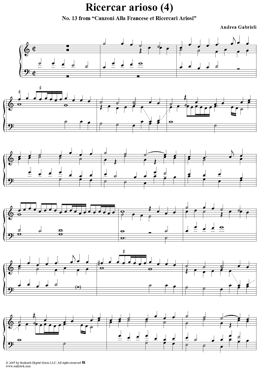 "Ricercar arioso (IV), No. 13 from "Canzoni Alla Francese et Ricercari Ariosi"" Sheet Music by Andrea Gabrieli