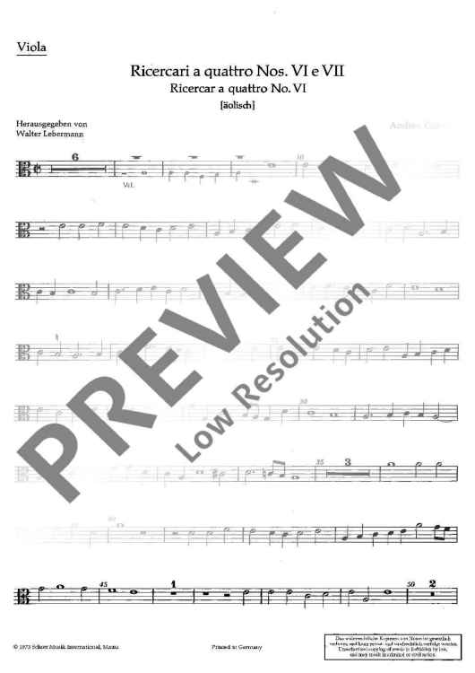 Digital Sheet Music for Ricercari a quattro - Viola by Andrea Gabrieli, Walter Lebermann scored for String Quartet Or String Orchestra; id:482106