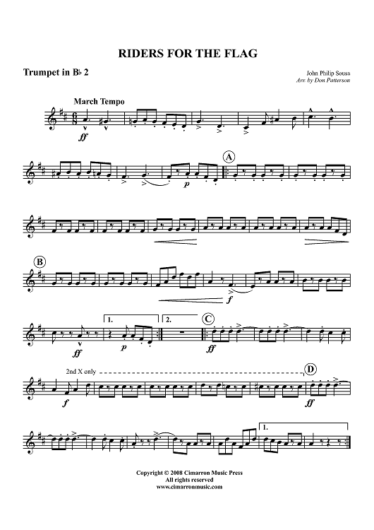 Digital Sheet Music for Riders for the Flag - Trumpet 2 in Bb by John Philip Sousa, Don Patterson scored for Brass Quintet; id:416955