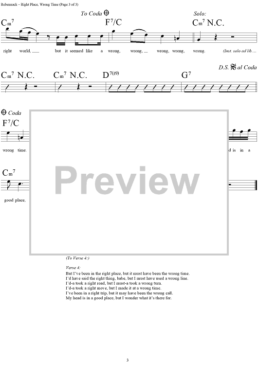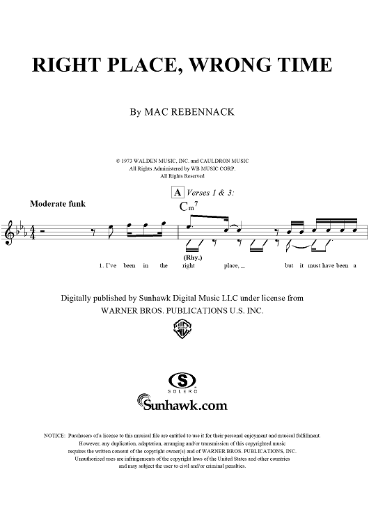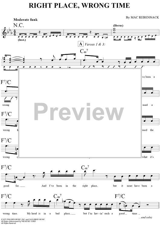 Digital Sheet Music for Right Place, Wrong Time by Mac Rebennack, Dr. John scored for Lead Sheet; id:291619