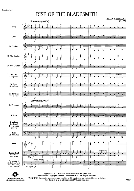 Digital Sheet Music for Rise of the Bladesmith - Score by Brian Balmages scored for Concert Band; id:438680