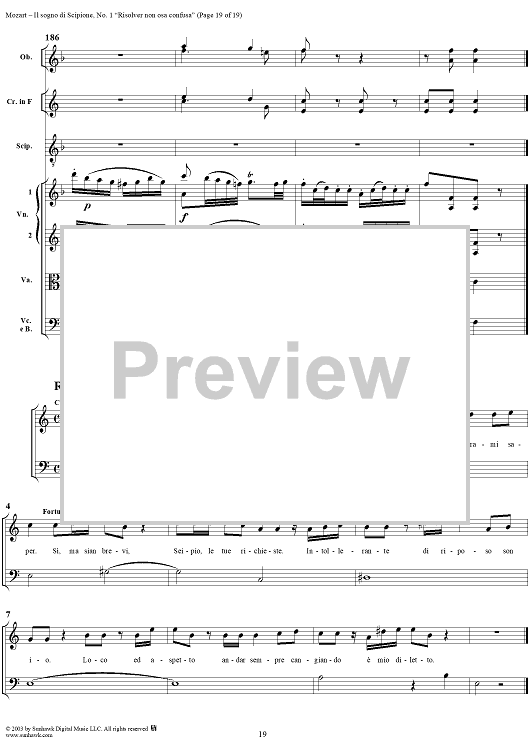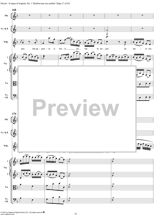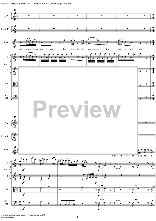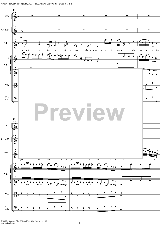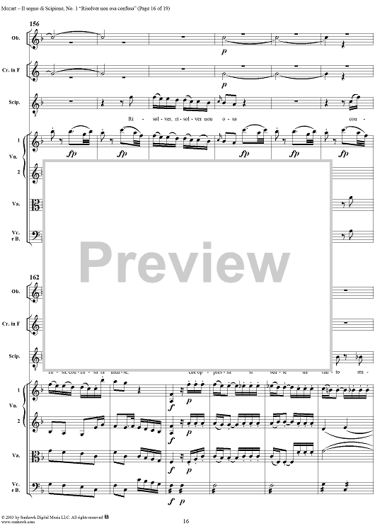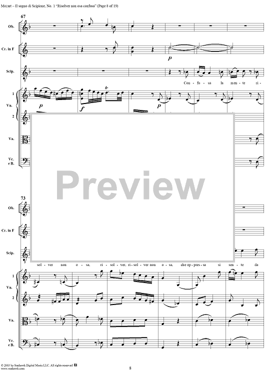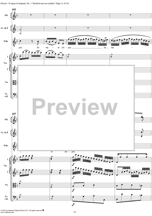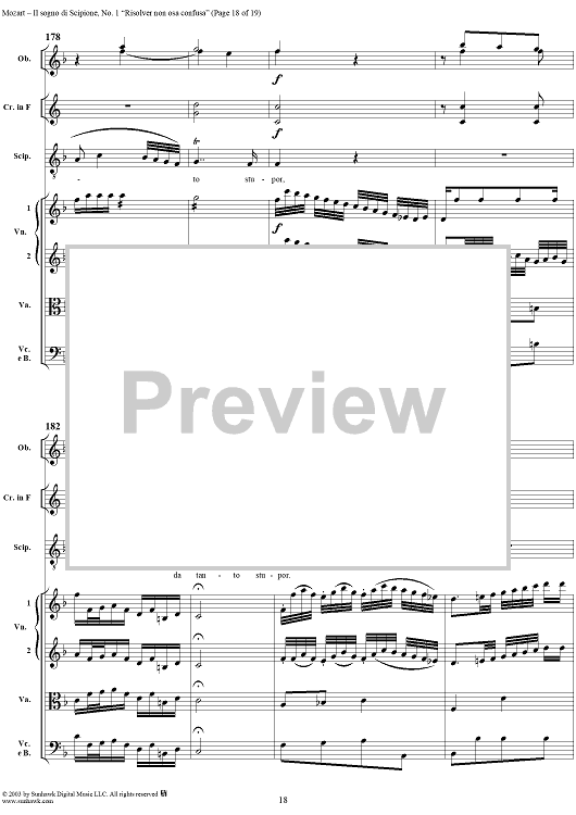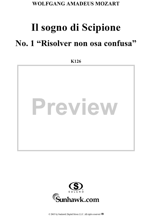 Digital Sheet Music for Risolver non osa confusa (Aria), No. 1 from "Il Sogno di Scipione" - Full Score by Wolfgang Amadeus Mozart scored for Soli/SATB/Orchestra; id:291167