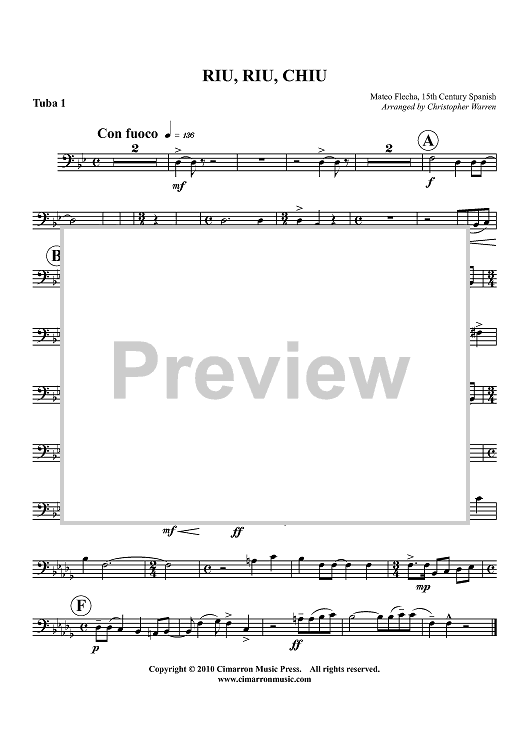 Digital Sheet Music for Riu, Riu, Riu - Tuba 1 by Christopher Warren, Mateo Fletcha scored for Tuba Quartet; id:413381
