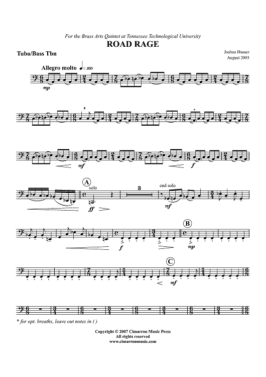 "Road Rage - Bass Trombone/Tuba" Sheet Music by Joshua Hauser