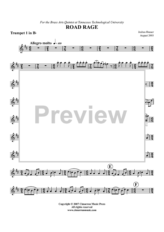 Digital Sheet Music for Road Rage - Trumpet 1 in B-flat and C by Joshua Hauser scored for Brass Quintet; id:364657