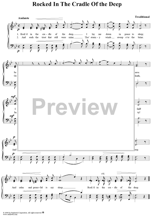 Digital Sheet Music for Rocked in The Cradle of The Deep by Traditional scored for Four-part Mixed Chorus; id:118126