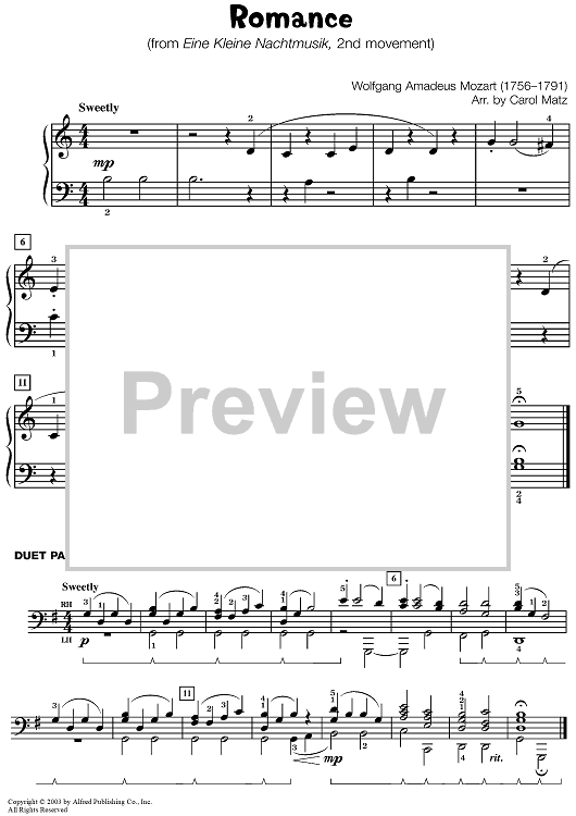 Digital Sheet Music for Romance (from Eine Kleine Nachtmusik, 2nd Movement) by Wolfgang Amadeus Mozart, Carol Matz scored for Piano; id:471221