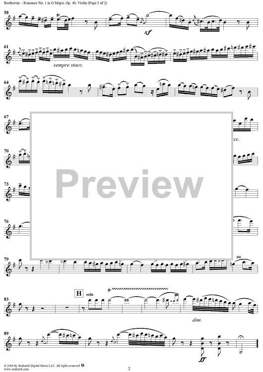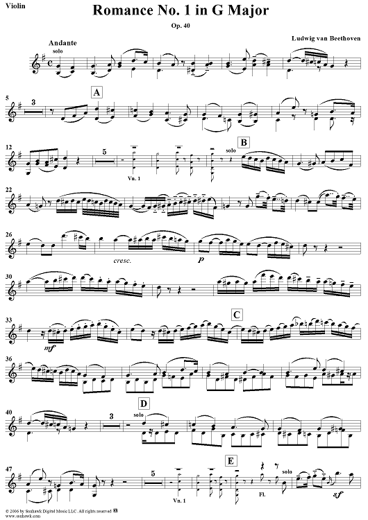 Digital Sheet Music for Romance, Op. 40 - Violin by Ludwig van Beethoven scored for Violin/Piano; id:317850