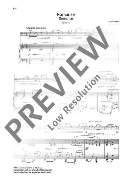 Digital Sheet Music for Romance by Max Reger scored for Cello And Piano; id:491563