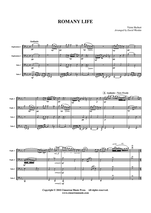 Digital Sheet Music for Romany Life - Score by David Werden, Victor Herbert scored for Tuba Quartet; id:427447
