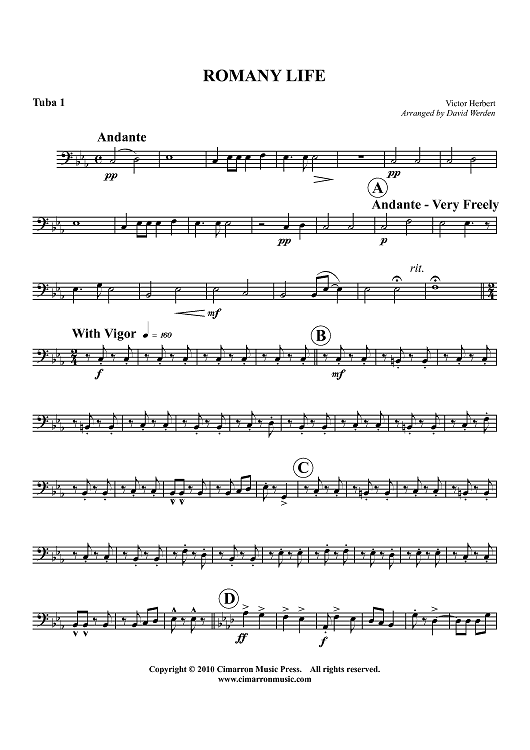 Digital Sheet Music for Romany Life - Tuba 1 by David Werden, Victor Herbert scored for Tuba Quartet; id:427450