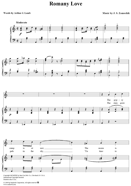 Digital Sheet Music for Romany Love by J. S. Zamecnik scored for Piano/Vocal; id:261902