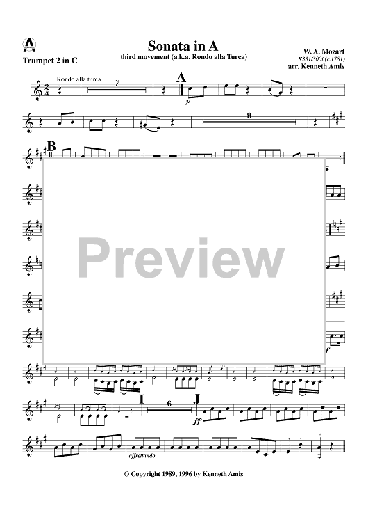 Digital Sheet Music for Rondo alla turca (Sonata in A, mvmt. 3) - Trumpet 2 in C by Wolfgang Amadeus Mozart, Kenneth Amis scored for Brass Quintet; id:404103