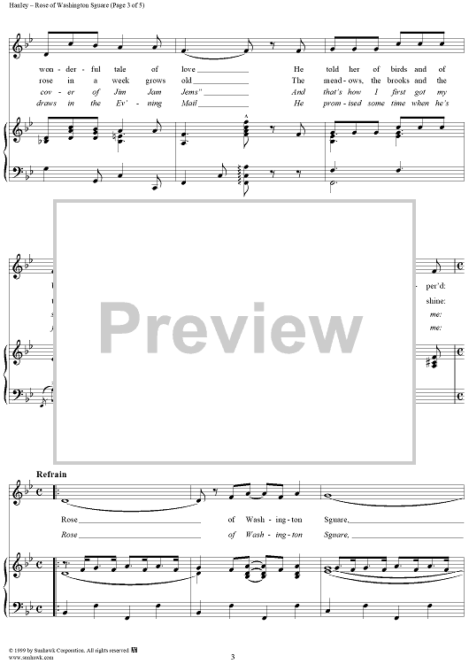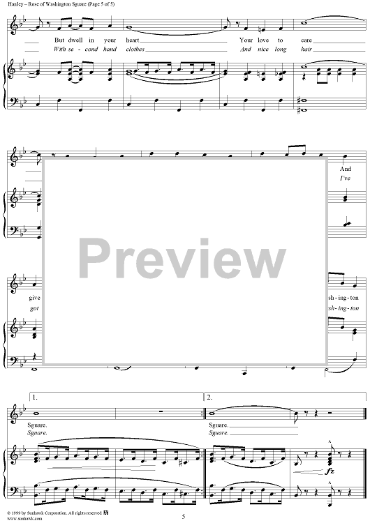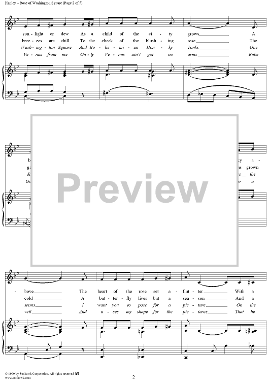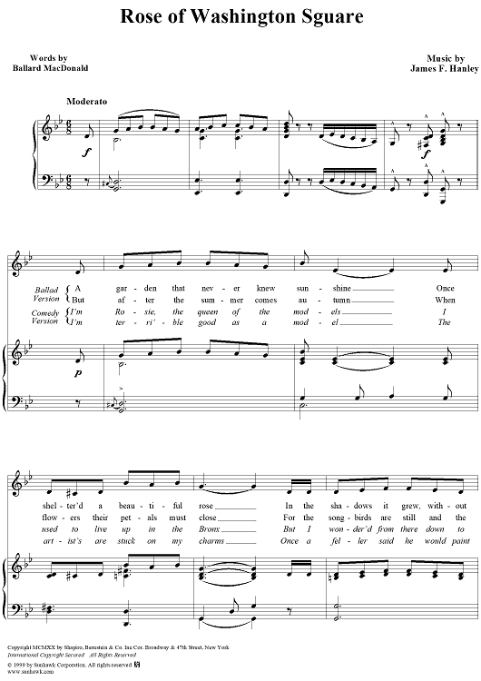 Digital Sheet Music for Rose Of Washington Square by James F. Hanley scored for Piano/Vocal; id:253658