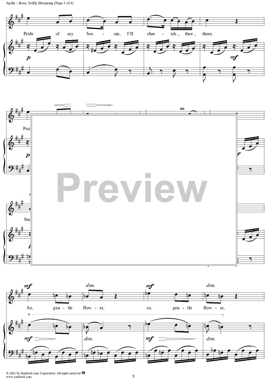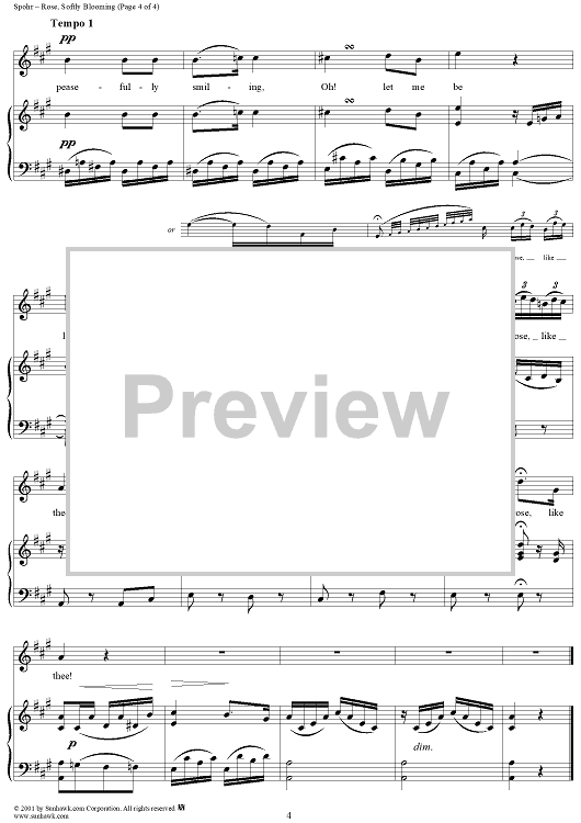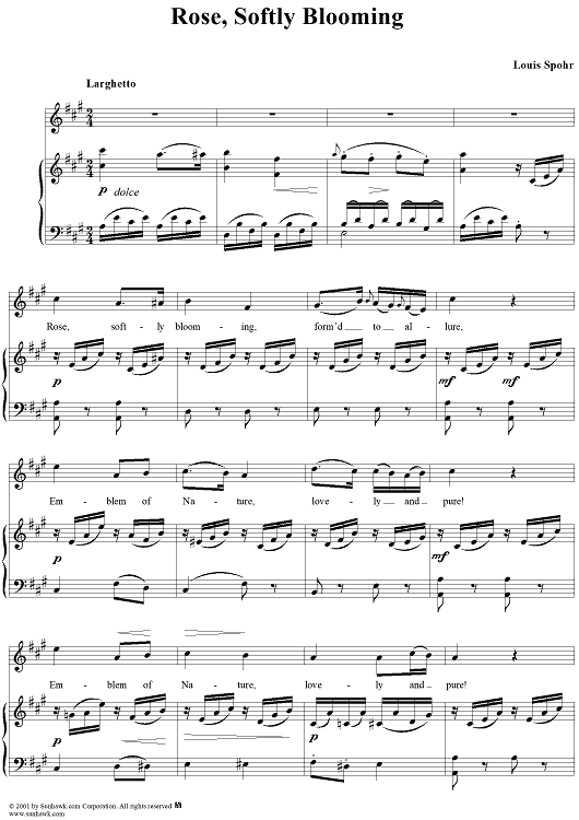 Digital Sheet Music for Rose, Softly Blooming by Louis Ludwig Spohr scored for Voice/Piano; id:258586